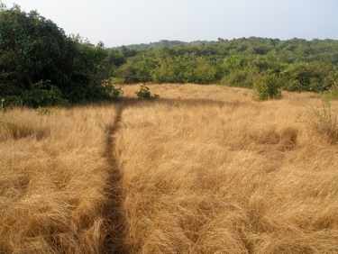 The path continues all the way to the road near Baga bridge. Look out around here for Peafowl, Orange-headed Thrush and even Indian Pitta