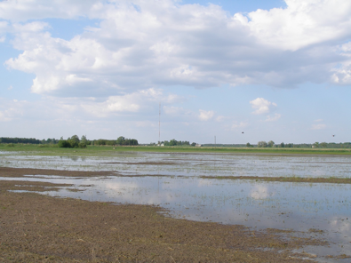 An area of open fields that often flood to provide habitat for wildfowl, gulls and passage waders