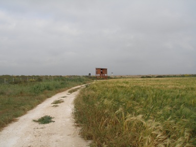 The view from the hide overlooking Larnaca Sewage works. The causeway between the two lagoons has previously been terrific for roosting gulls.