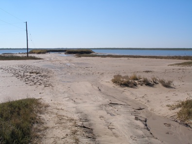The view from Brushline Road looking west down a track towards the Sal del Rey. You are allowed to walk this track.