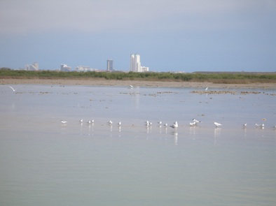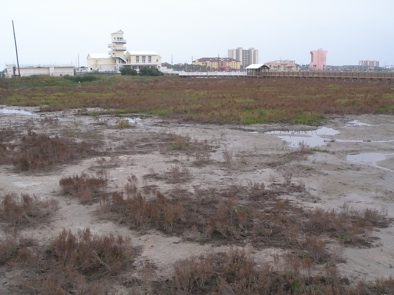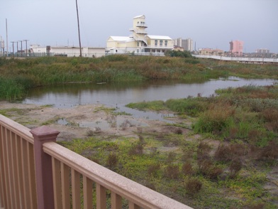 Looking inland from the boardwalk this shows not only the wader habitat but also the new World Birding Center