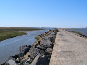 The causeway becomes so narrow there is water on both sides of the road - great for waders, terns and gulls.
