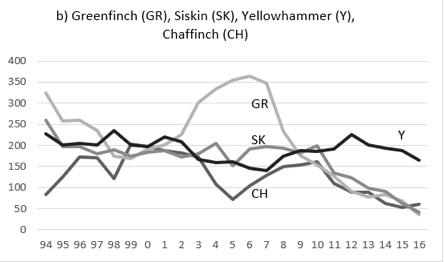 This paper is an analysis of the archive of records held by the Sheffield Bird Study Group, looking at changes in numbers in SK47, 48 and 49 since 2009. Here’s one of the many graphics: