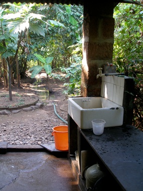 The water that drains from the kitchen sink runs into a channel that attracts Nilgiri Blackbird and, in some years, Indian Pitta.