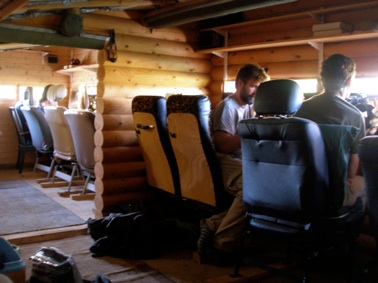The seats in the main hide are exceptionally comfortable. The rear of the hide has bunk beds for sleeping overnight. Our guide, Mika (mid picture) was exceptionally knowledgeable and helped us to understand just what remarkable lives the bears lead.