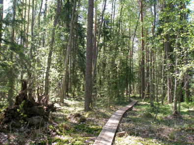 There’s a boardwalk trail that leads across Nigula Bog to a forested island