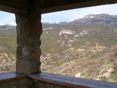 This is the view from the ‘observatorio des buitres’ in the village of Santa Cilia de Panzano. The distant grey slab in the centre of the picture is where the food is placed for vultures. This is the best of the feeding stations for Lammergeier.